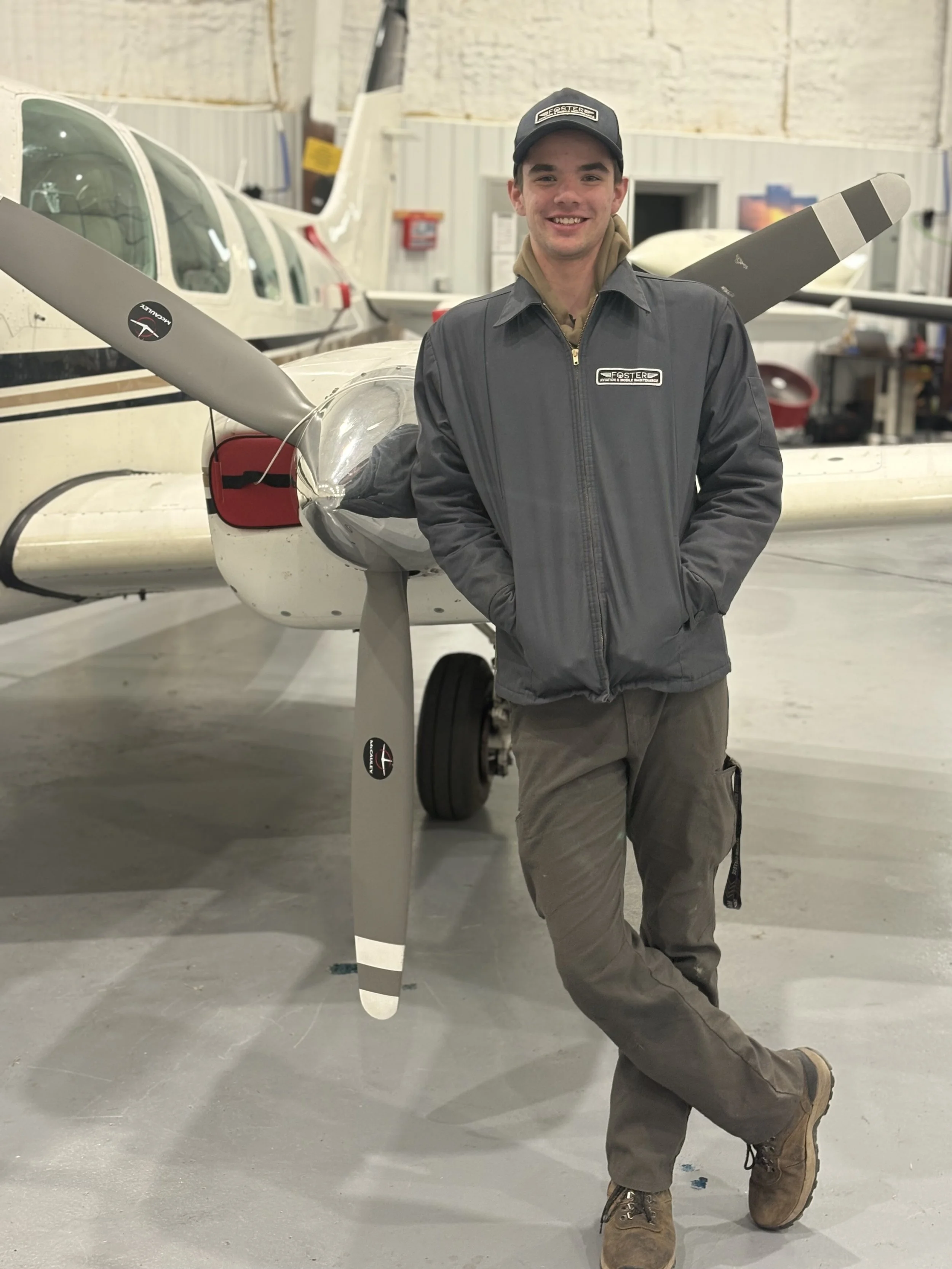 (Director of Maintenance) A graduate of the New River Community College, attained an AA in Business through the local ACE Scholarships program. Thanks to a spontaneous and fortunate trip to the local airport, Clay has been a part of the Foster Aviation team from the beginning. From plane washer, to apprentice, to Director of Maintenance in a few short years, aviation isn’t just a job, but an essential part of life. When he’s not busy meeting the needs of our team, Clay and his wife are partnered owners of Green Seekers, a local golf simulator business.